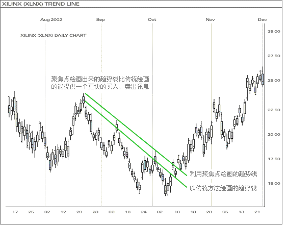 以前市重要的聚焦点来绘画的支持/阻力线,对掌握後市动向极为有帮助。一支拥有很长烛身的乾坤烛,其聚焦点(如上图)同样对预测後市有极大的帮助。