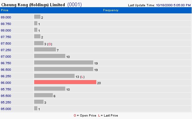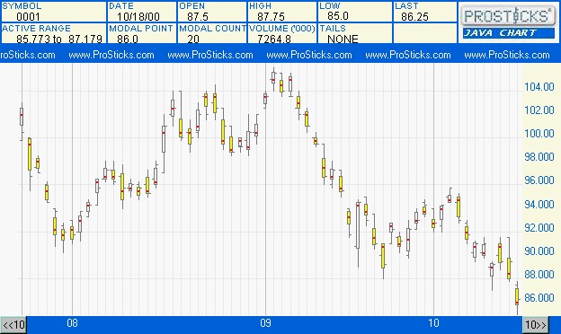 interval 10:00-10:05, the stock has traded at 87-87.5, we