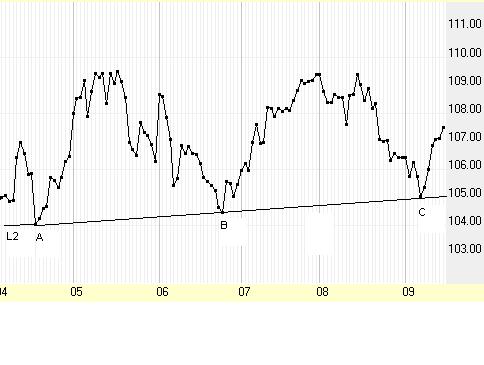 trendlines. Take the support trendline as an example. One