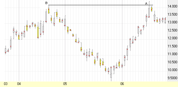 (0041). Notice that at A, the price broke above the previous