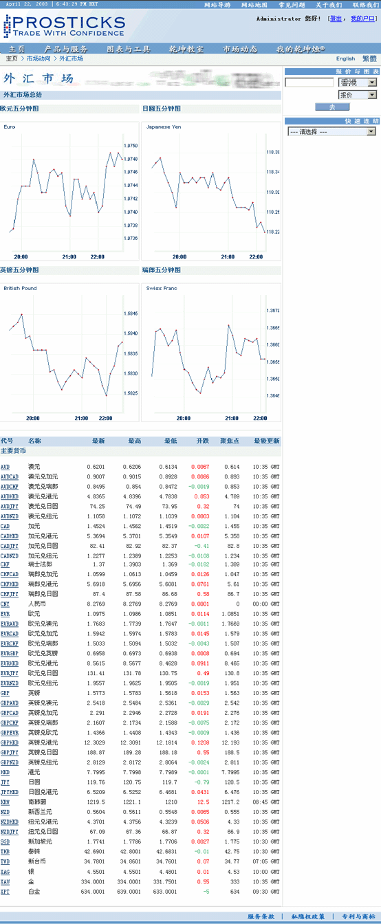 可收到最新外汇资讯,当中包括主要四大外币 - 欧元、日元、英镑及瑞士法郎的五分钟走势图表及所有外汇的报价表(包括所有交叉盘报价)。